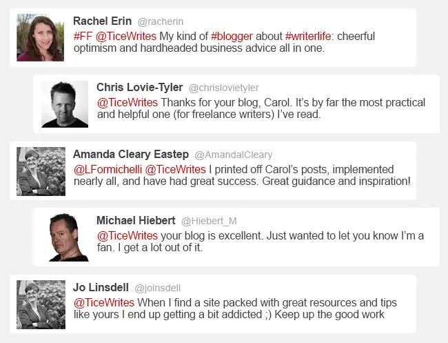There is only one blog I read religiously. “And the reason is that Carol Tice is balls-to-the-wall, over-the-top, all-hands-on-deck focused on helping professional writers be more successful.”